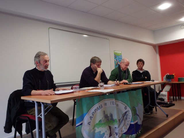 Près d'une centaine de participants à l'AG de l'AAPPMA, au Pôle des métiers à LOC EGUINER. De nombreux élus présents Le Président de la fédération départementale ainsi que les présidents de trois AAPPMA (Morlaix, Antrain (le COUESNON) Daoulas), EAU ET RIVIERES DE BRETAGNE, l'ABPM, GASPARE..... Après la partie statutaire consacrée au bilan de l'année 2O14 (voir détail en PJ) rapport d'activité et rapport financier, les deux sujets brûlants ont été évoqués au titre de l'année 2O15. Quel avenir pour l'entretien de la rivière et la structure salariée ? Les cyanos au Drennec, quel avenir pour le lac ?